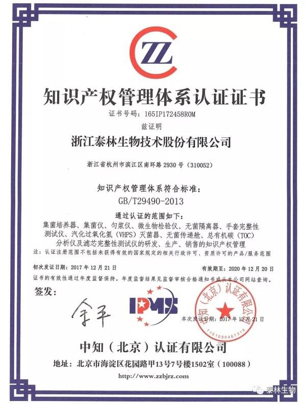 知識產(chǎn)權作為科技創(chuàng )新發(fā)展的重要因素,在努力創(chuàng )新的同時(shí)加強保護與風(fēng)險防范,知識產(chǎn)權管理體系的建設具有十分重大的意義。泰林生物董事長(cháng)葉大林先生表示,獲得國家級認證機構的知識產(chǎn)權管理體系認證,是對泰林生物知識產(chǎn)權管理工作的認可和激勵,標志著(zhù)泰林生物知識產(chǎn)權管理工作邁上一個(gè)新的臺階。未來(lái),泰林生物將完善知識產(chǎn)權管理體系,進(jìn)一步做好知識產(chǎn)權工作,為公司經(jīng)營(yíng)發(fā)展貢獻更大力量。