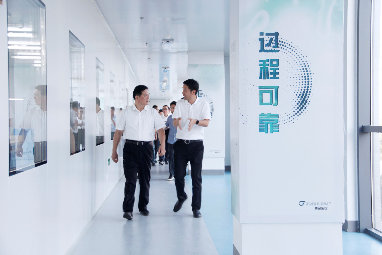 9月23日下午,杭州市富陽(yáng)區委書(shū)記朱黨其一行蒞臨泰林東洲基地,開(kāi)展“走親連心三服務(wù)”走訪(fǎng)調研活動(dòng)。區領(lǐng)導丁永剛、許玉鈞參加調研,區委辦、區經(jīng)信局、區財政局、區科技局、區督查辦、區金融辦、富陽(yáng)經(jīng)濟技術(shù)開(kāi)發(fā)區領(lǐng)導和東洲街道領(lǐng)導陪同調研。泰林生物董事長(cháng)葉大林、泰林生命科學(xué)公司總經(jīng)理沈志林、泰林醫學(xué)工程公司總經(jīng)理夏信群熱情接待。